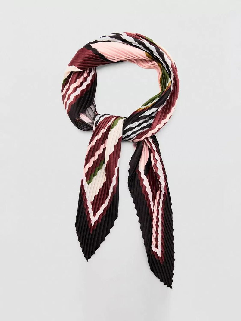 Stripe Pleated Scarf, Garnet