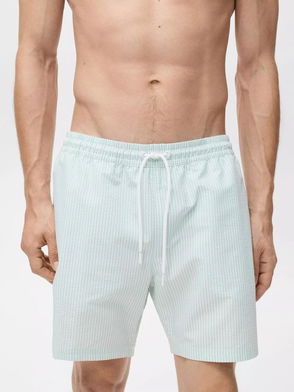Adding some classic preppy style to your poolside look, this pair of swim trunks from Mango are made from a seersucker fabric with an elasticated drawstring waist, as well as side and back pockets.