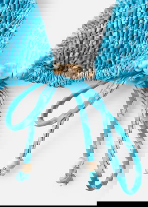 Oversized knitted cardigan. Elastic fabric. Striped print. Round neck. Wide straps. Classic panty. Swimwear collection.