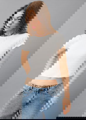 Striped print, Straight design, Rounded neck, Short sleeve.