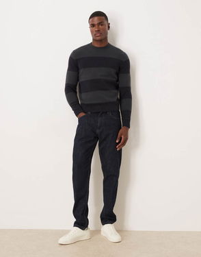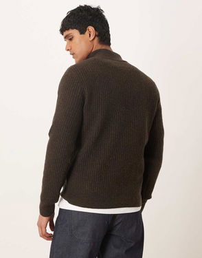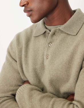Striped Knitted Polo Jumper In Dark Green
