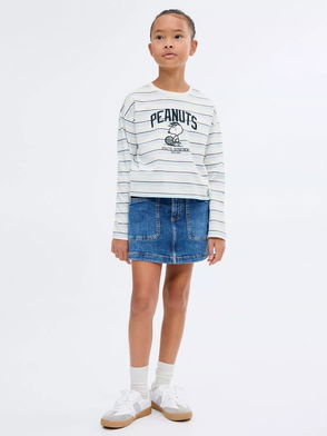 Straight design, Striped print, Rounded neck, Long sleeve.