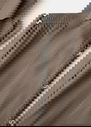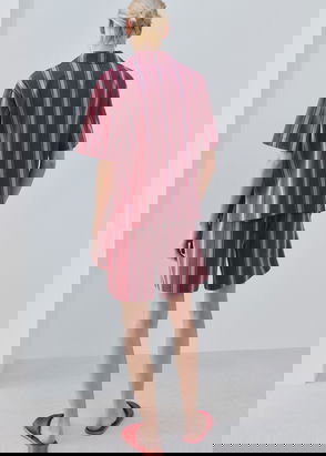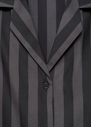 Flannel fabric, Long design, Straight design, Micro-stripe print, Shirt-style collar, Long sleeve, Patch pocket on the front, Front button closure, Co-ord.