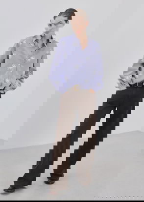 Entering your wardrobe's top ten Stripe design Point collar Button placket Long sleeves Regular fit.