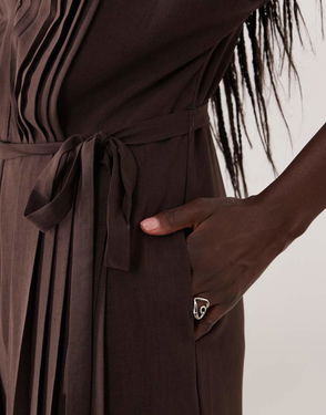 Structured Bodice Belted Pleat Front Jumpsuit