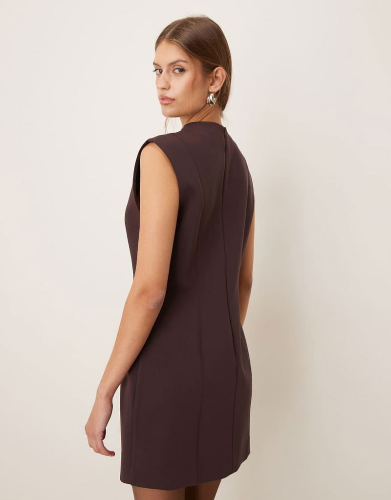 Structured High Neck Sleeveless Tailored Mini Dress In Brown