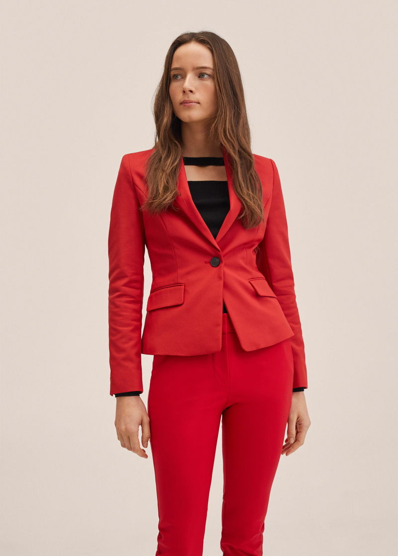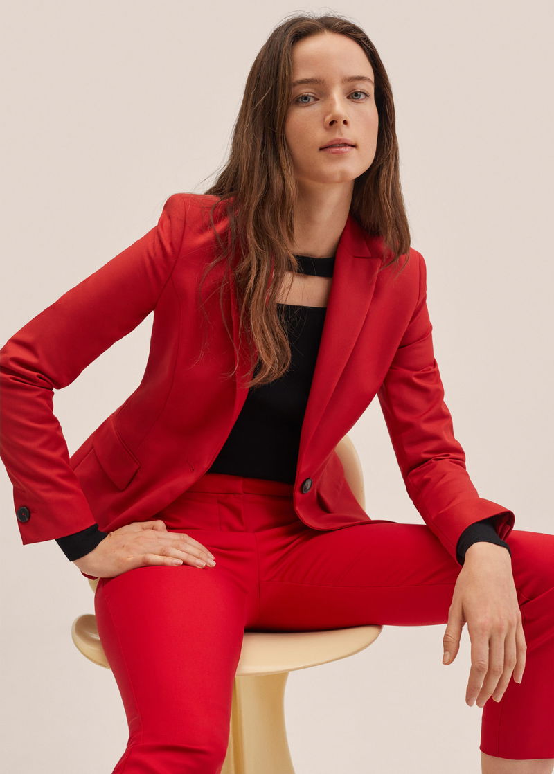 Committed Collection, Structured design, Tailored dress, Lapel-collar, Lapel with notch, Long sleeve, Two side pockets with flaps, Inner lining, Button fastening on the front section, Total look.