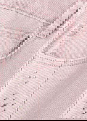 Cotton fabric. Stretch fabric. Long design. Culotte design. Regular Waist. Belt loops. Zip and button fastening. Two side pockets. Two patch pockets at the back. Decorative studs.