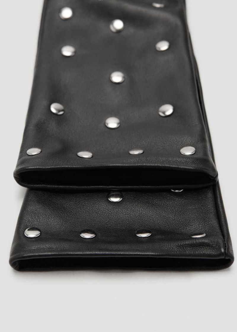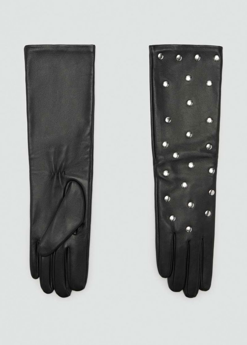 Studded Leather Long Line Gloves In Black