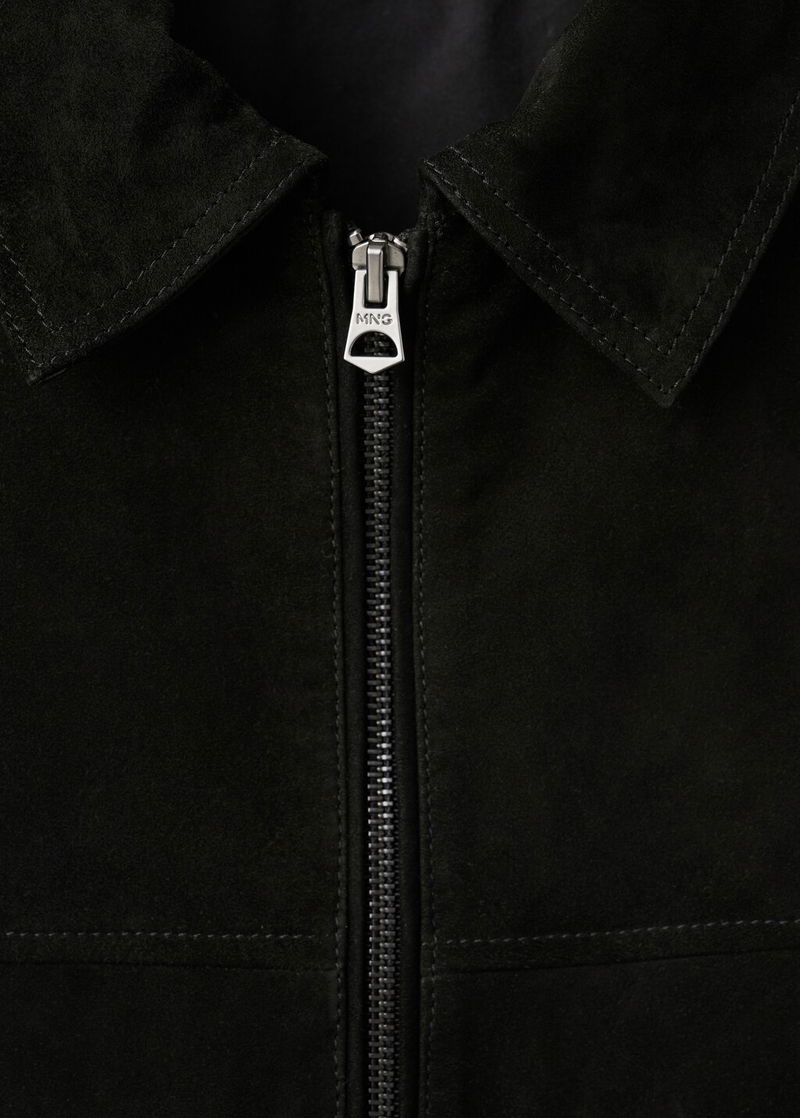 Suede Leather Jacket With Zipper Fastening