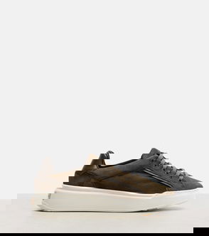 Decorated with contrasting suede panels, these flat trainers from Mango are designed in a classic lace-up style, with a padded cuff and round toe.