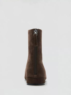 Suede Square Toe Low Heeled Western Ankle Boot In Grey