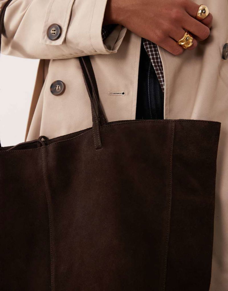 Suede Tote Bag In Chocolate