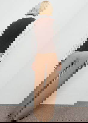 Straight design. Round neck. Sleeveless. Wide straps. Two front welt pockets. Adjustable buckle on the back. Front closure with buttons. Total look.