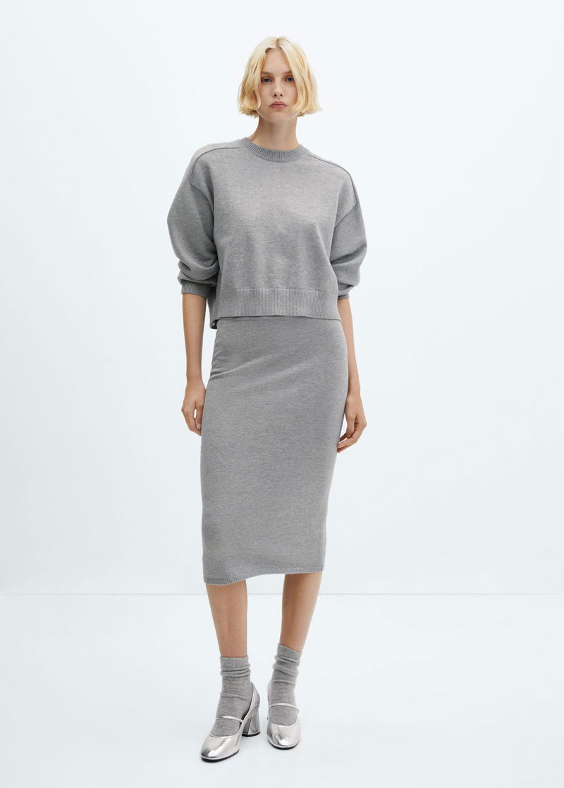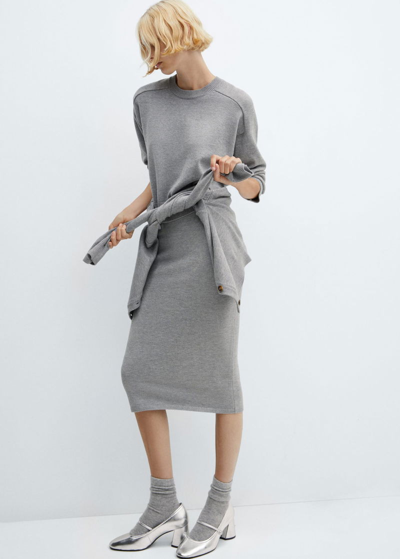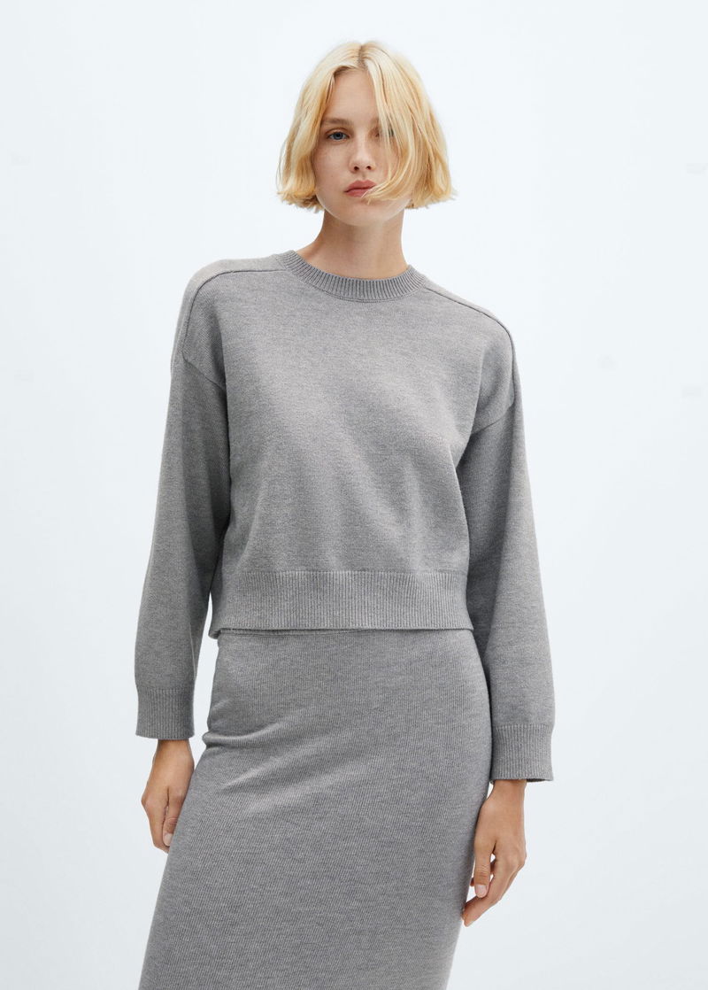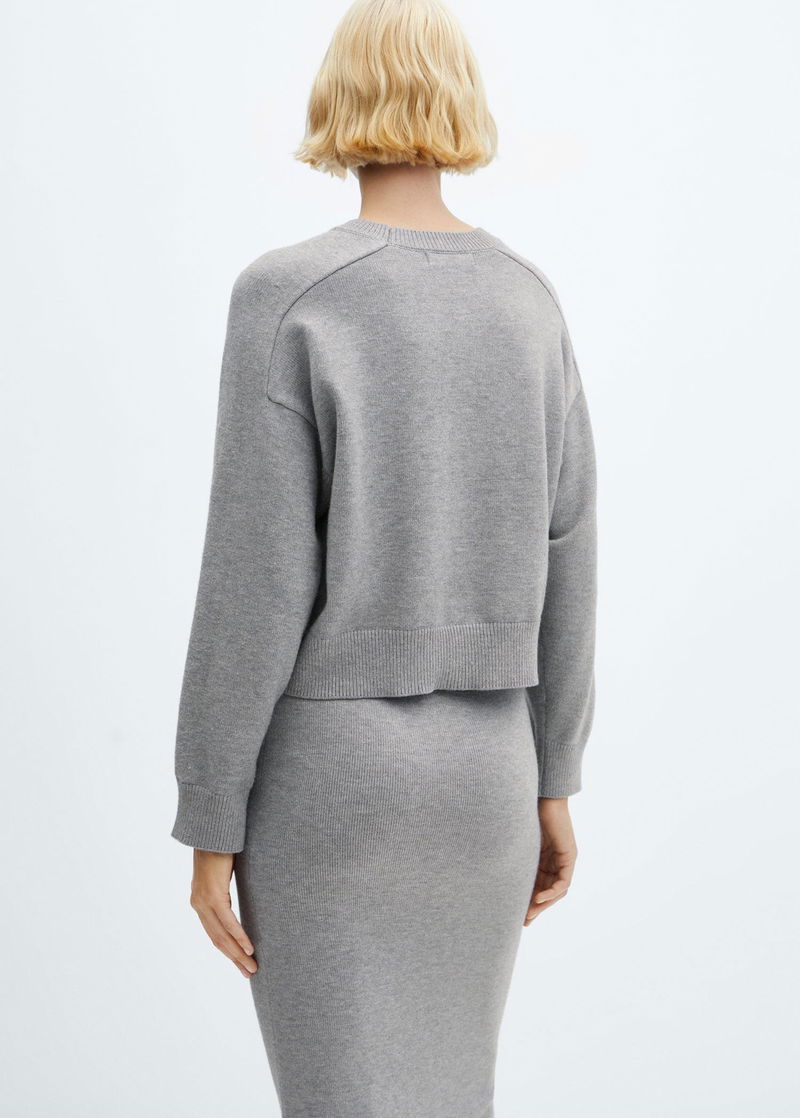 Thick knitted fabric, Straight design, Rounded neck, Long sleeve, Cable knit finish, Decorative stitching on the shoulders, Co-ord.