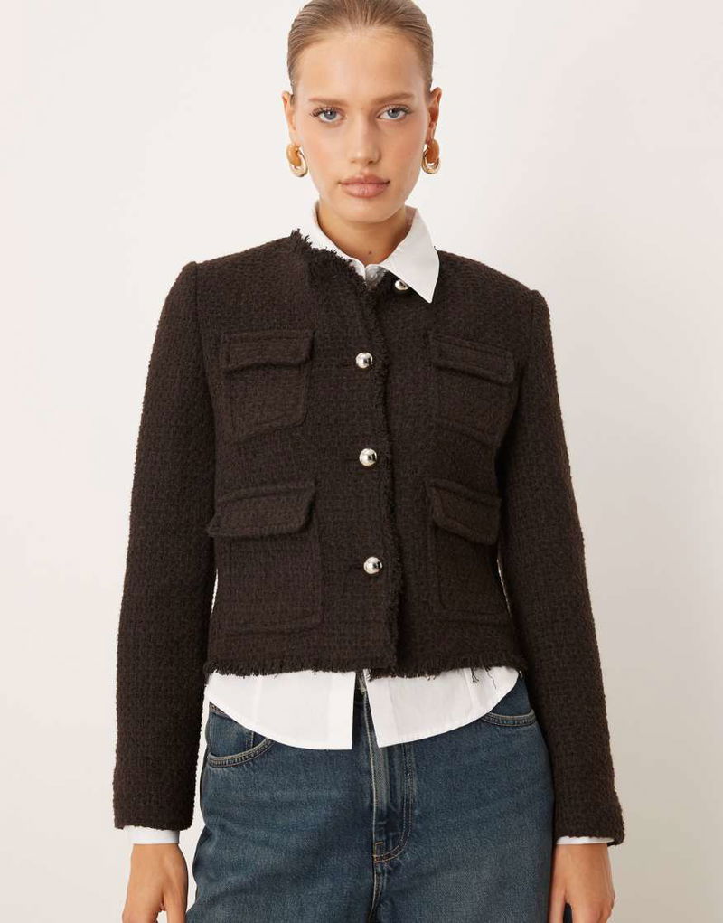 Tailored Boucle Jacket In Brown