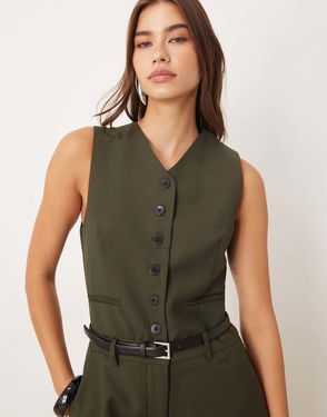 Tailored Waistcoat Jumpsuit With Belt In Navy Pinstripe