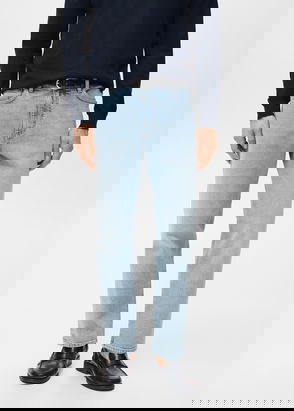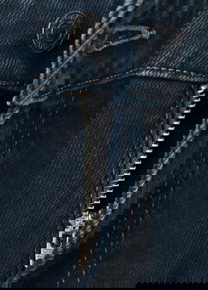 Regular, tapered fit Regular rise Belt loops Five pockets.