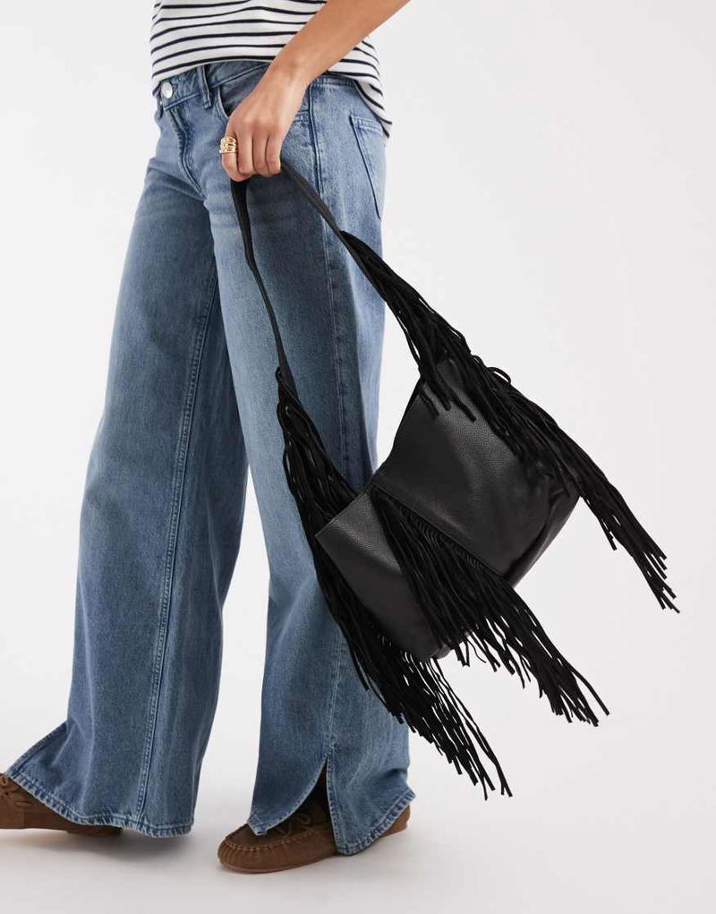 Teen 100% Leather Tassle Detail Shoulder Bag In Black