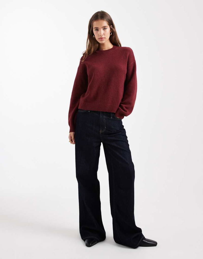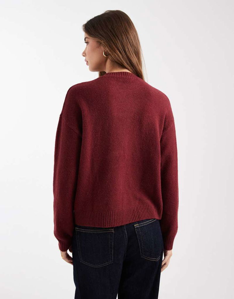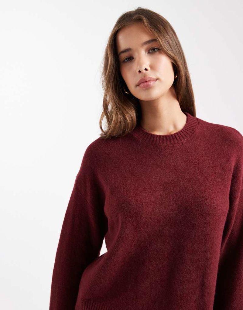 Teen Crew Neck Knitted Jumper In Burgundy