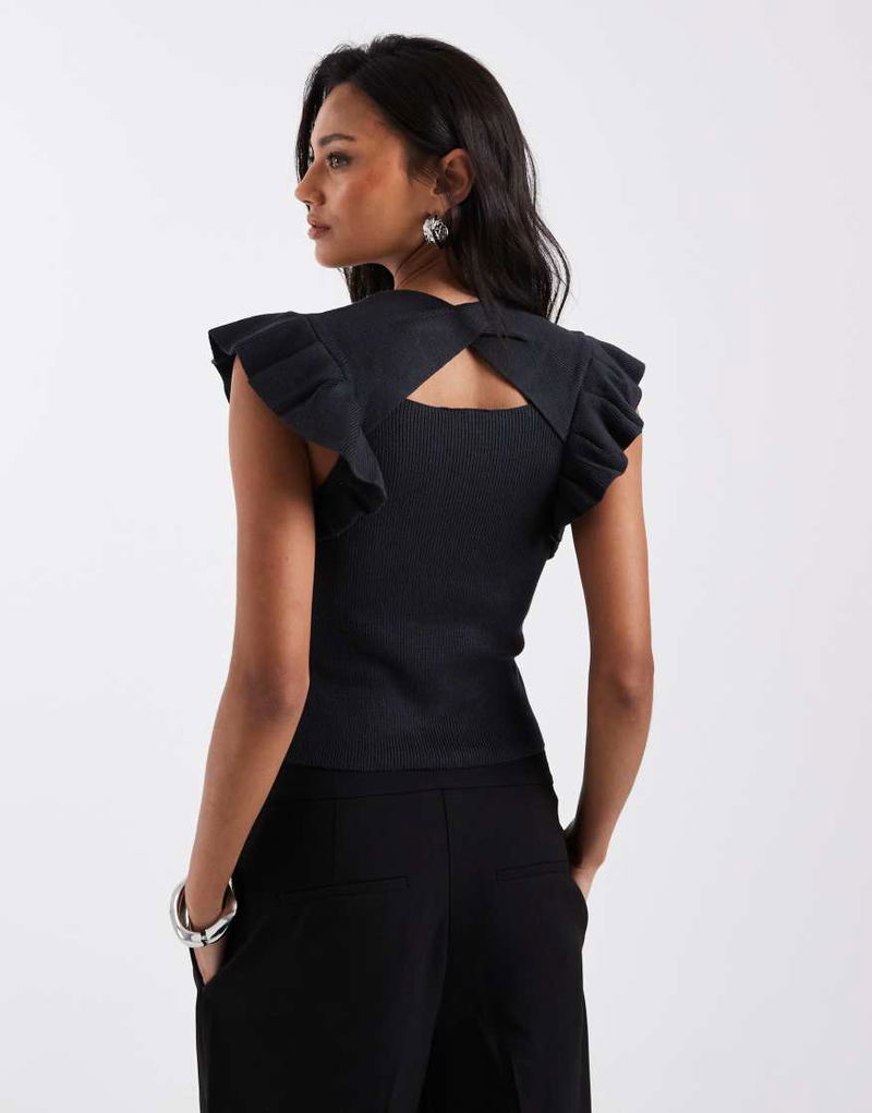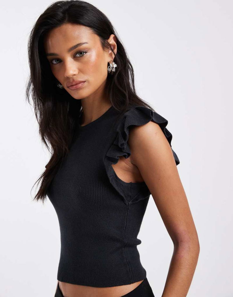 Teen Frill Sleeve Knitted Top In Charcoal