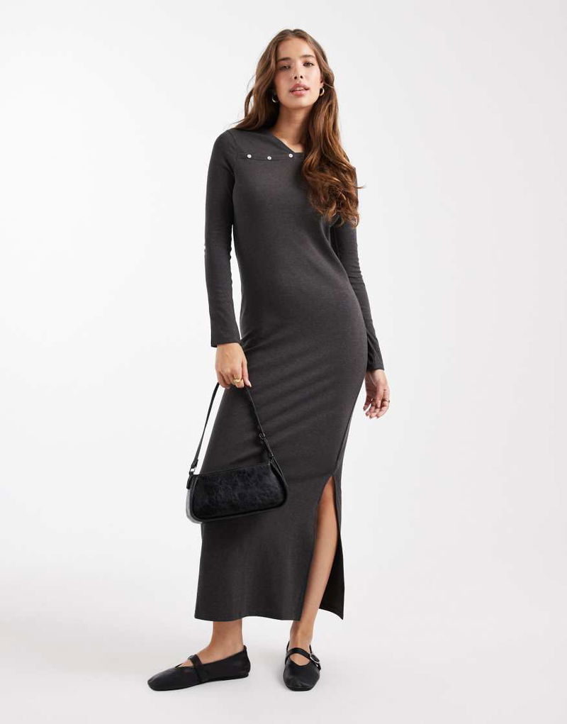 Teen Knitted Maxi Dress With Wrap Detail In Charcoal