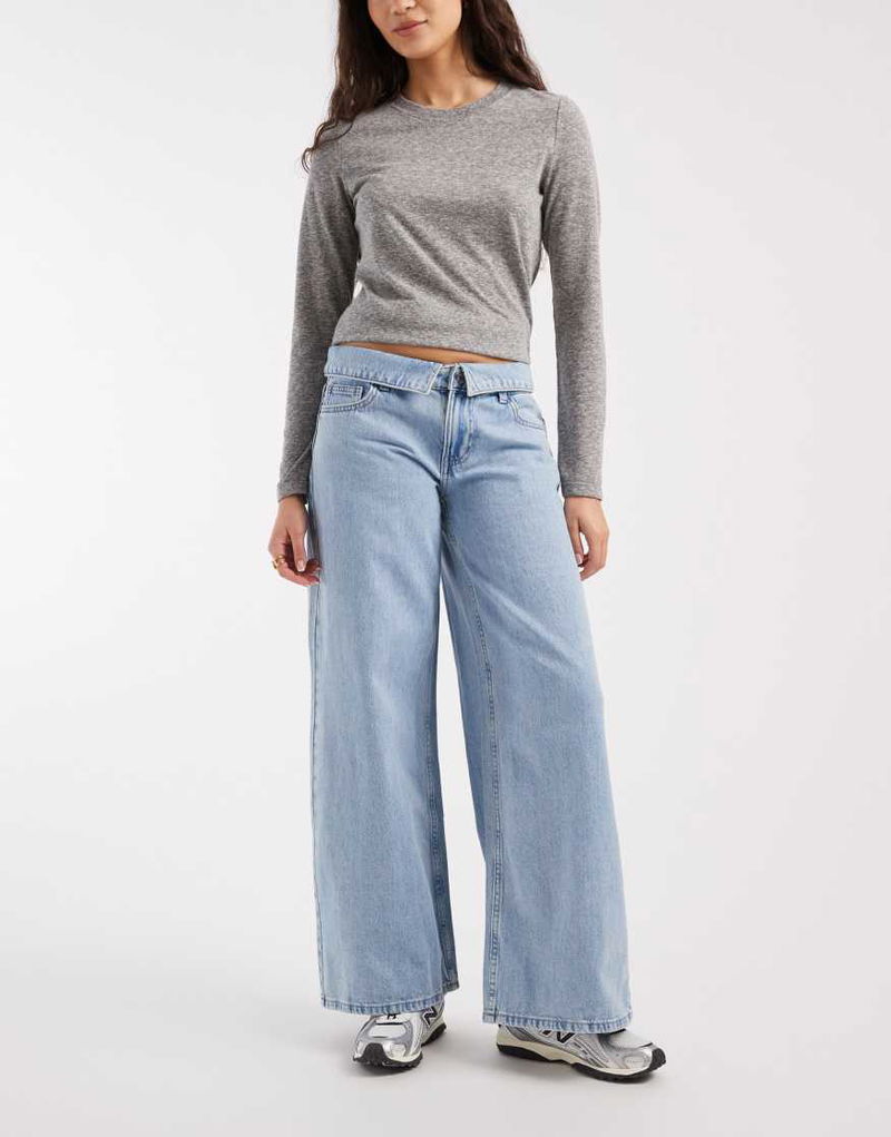 Teen Low Rise Fold Over Wide Leg Jean In Light Blue