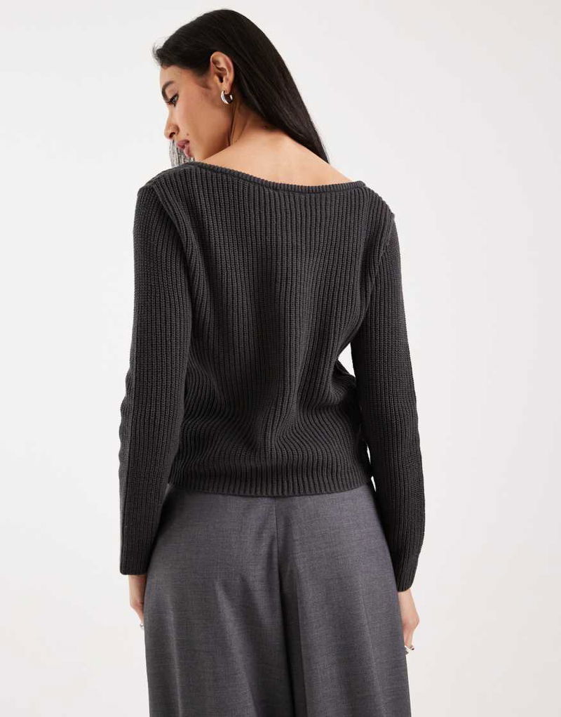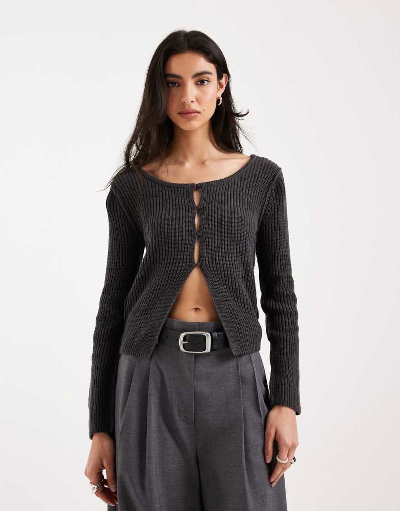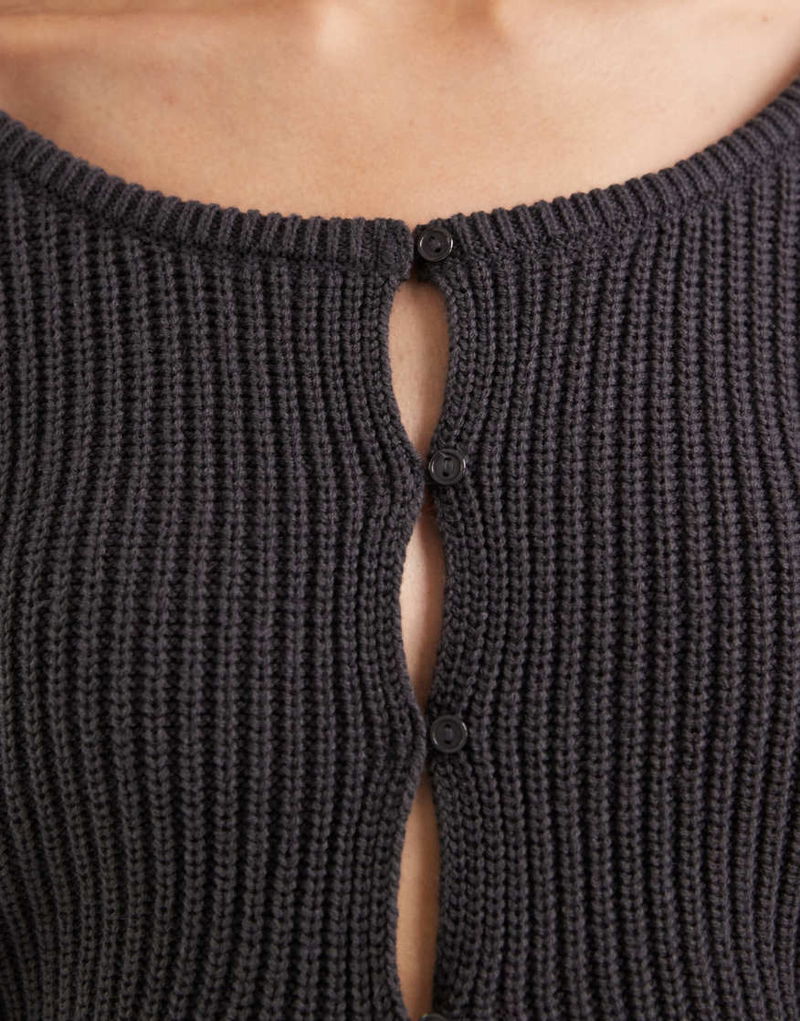 Teen Round Neck Knitted Top In Charcoal