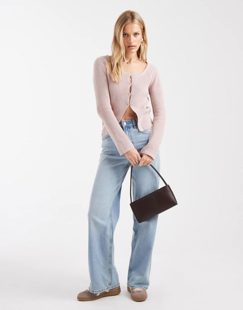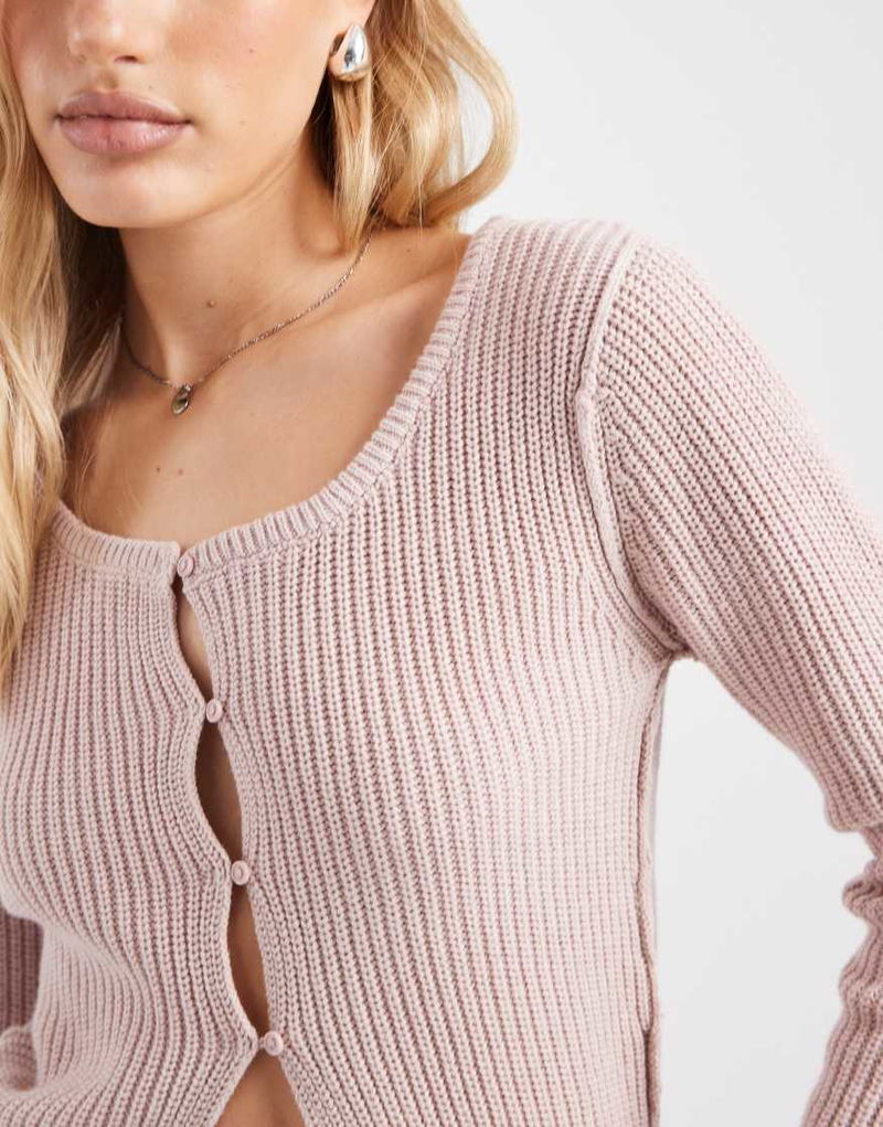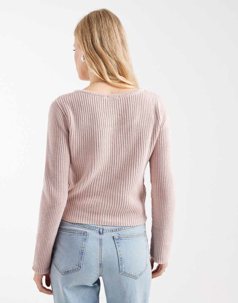 Teen Round Neck Knitted Top In Pastel Pink