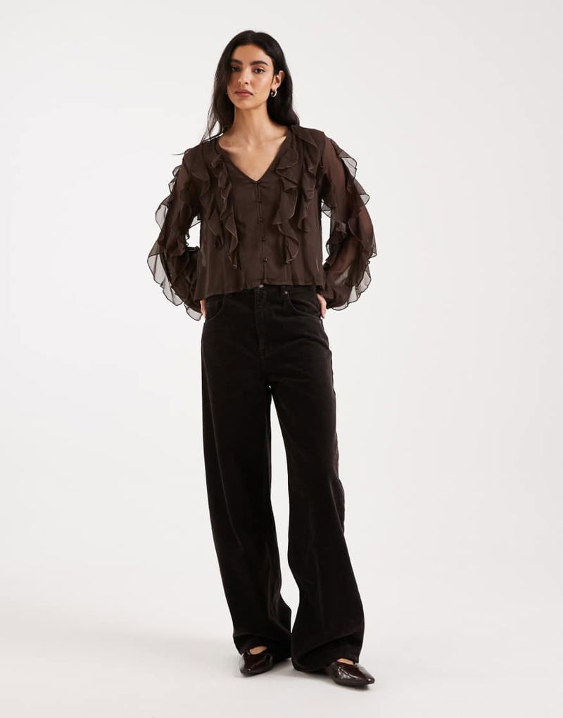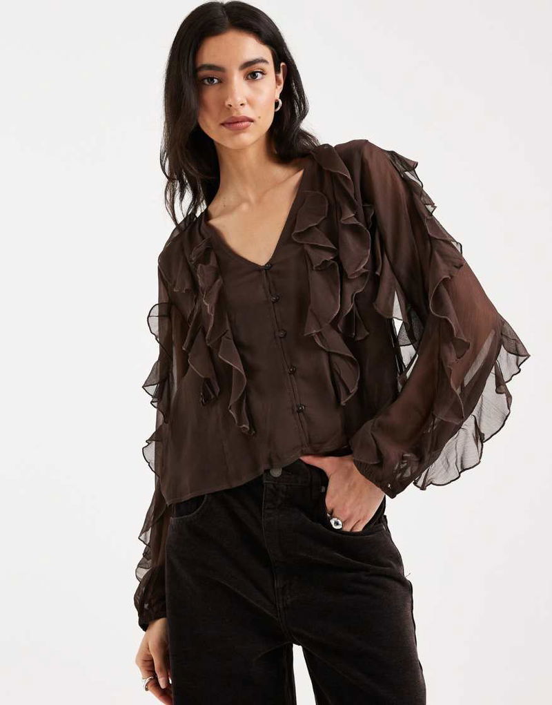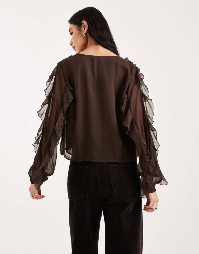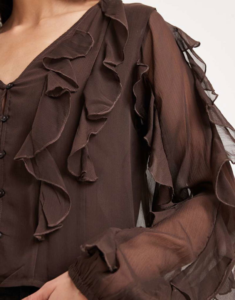 Teen Ruffle Long Sleeve Blouse In Brown