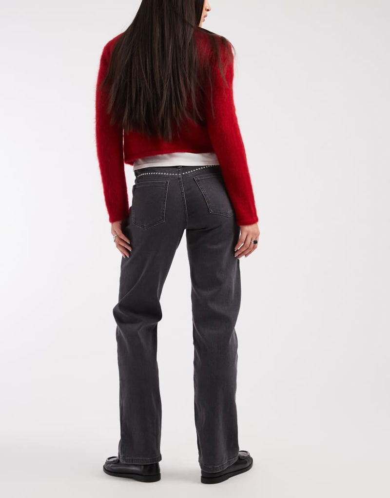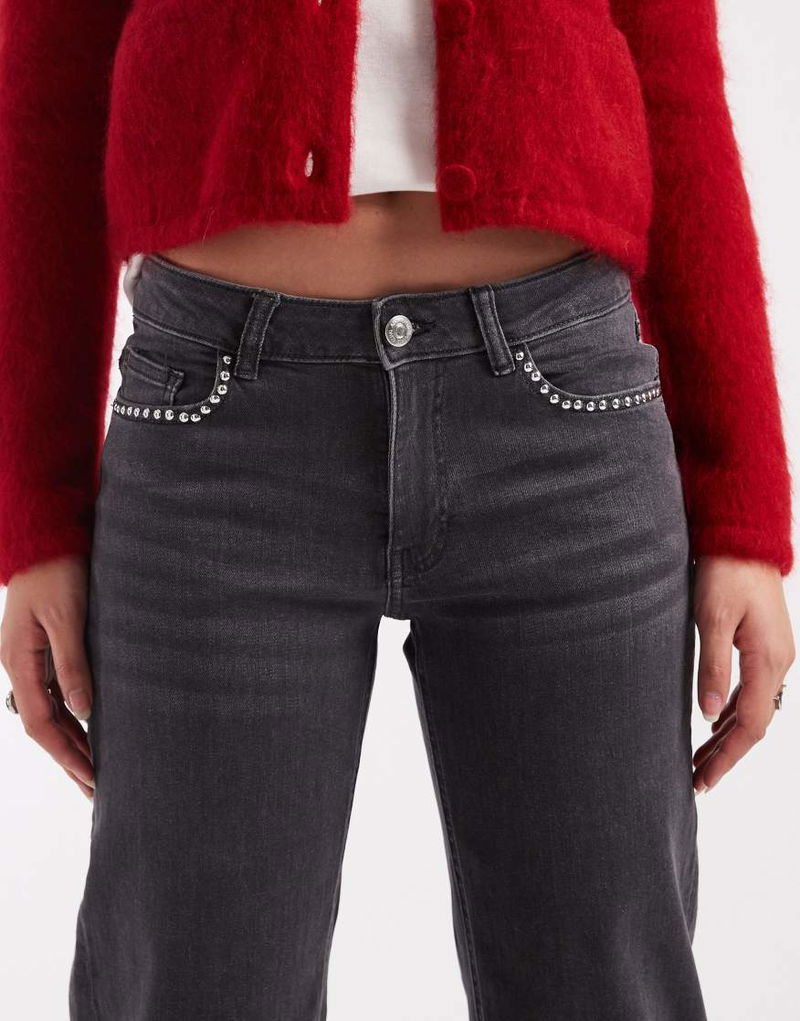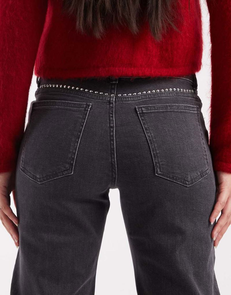 Teen Straight Leg Jean With Stud Pocket Detail In Washed Black