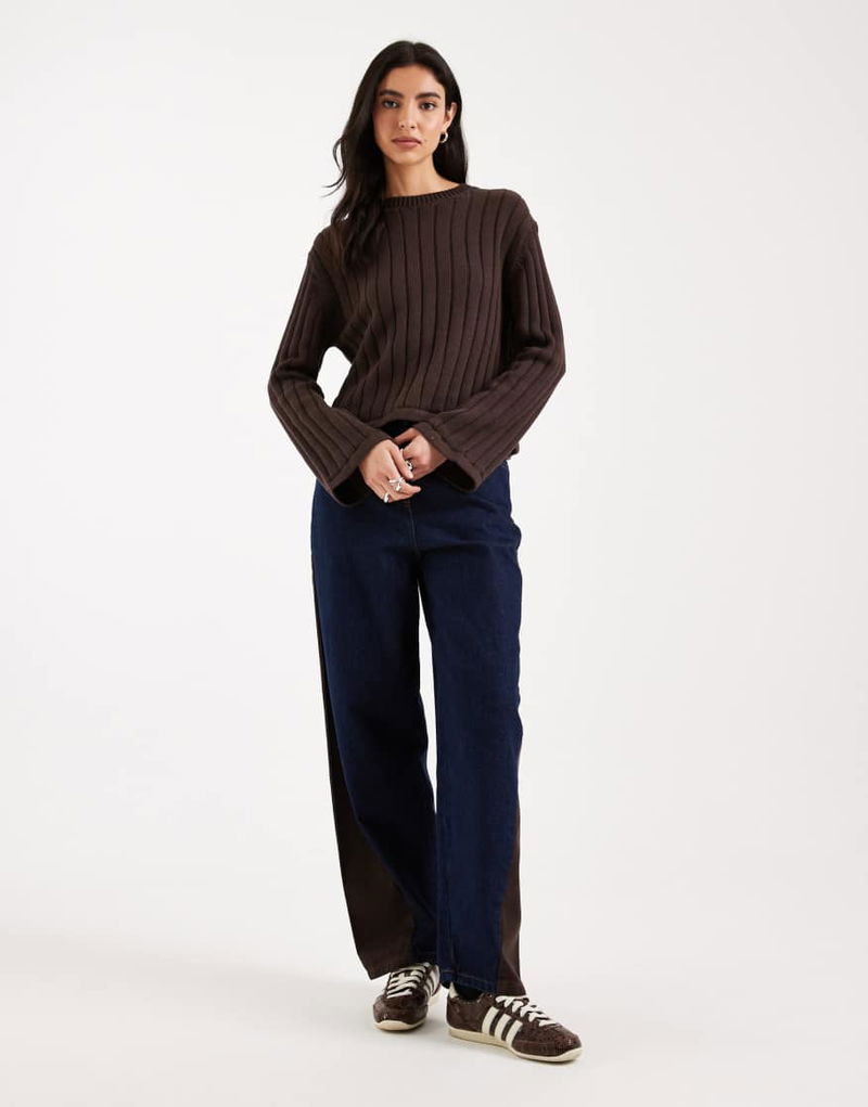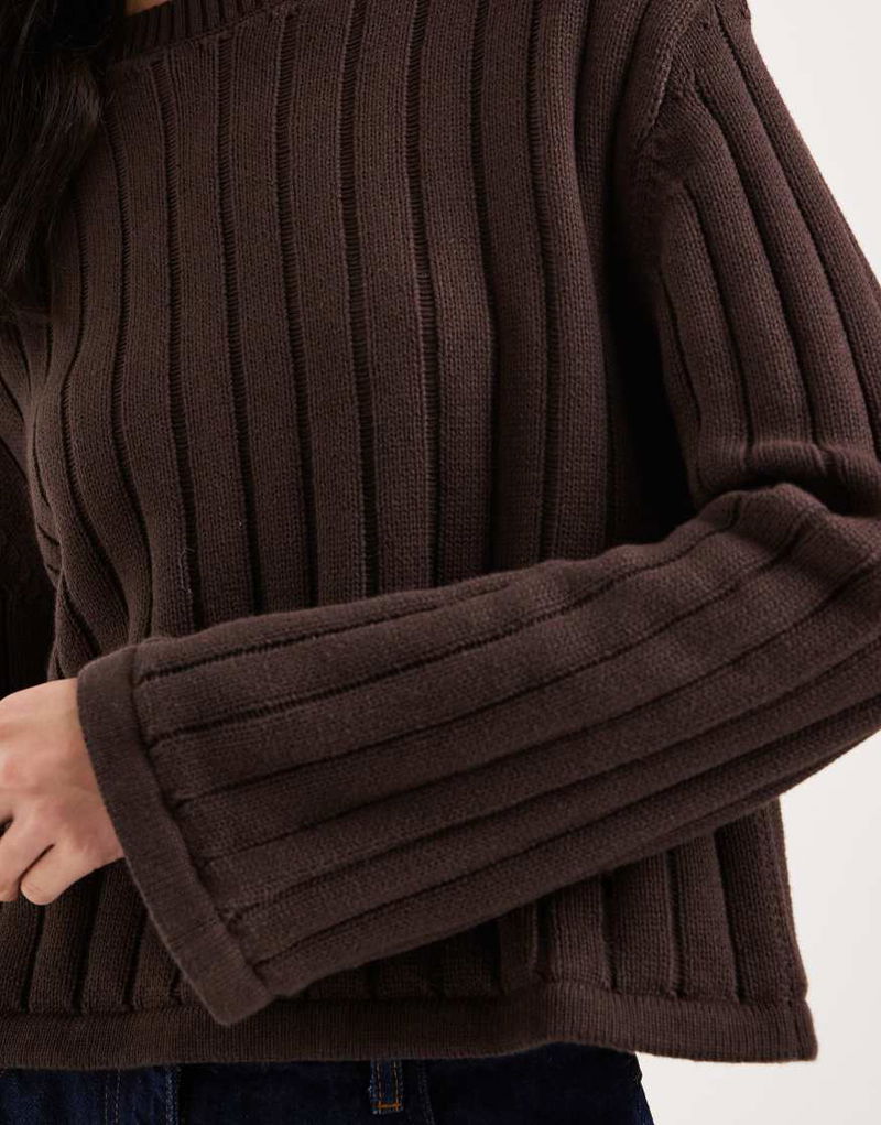 Teen Tie Front Cable Knit Top In Brown