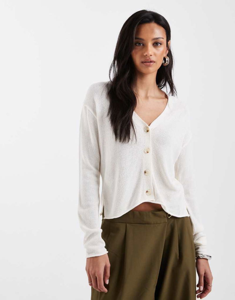 Teen V Neck Knitted Cardigan In Cream