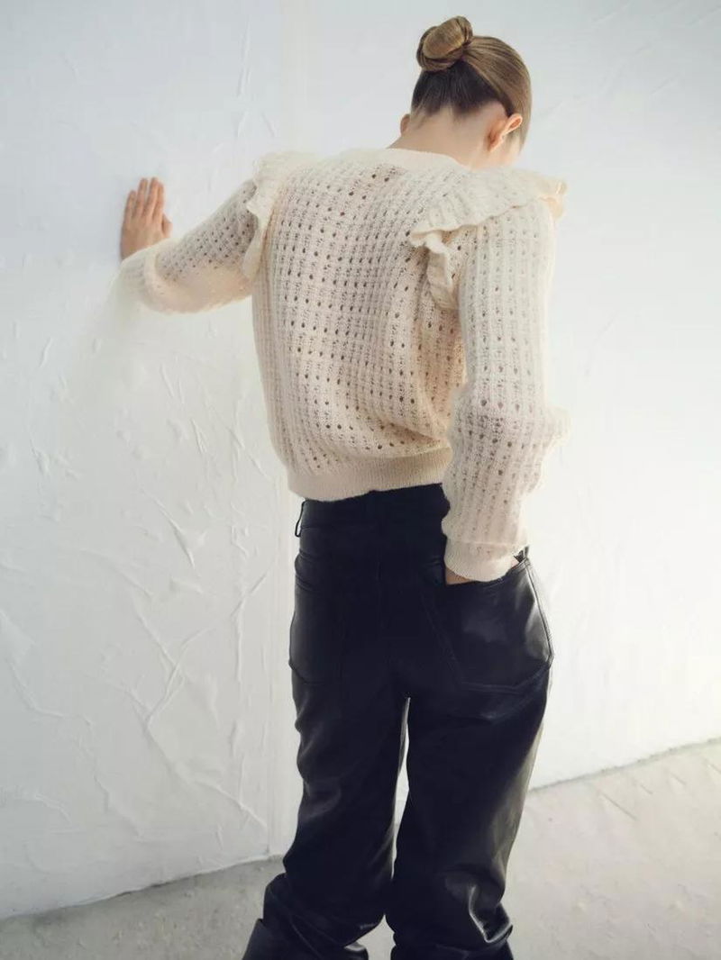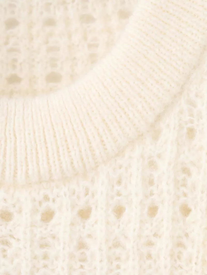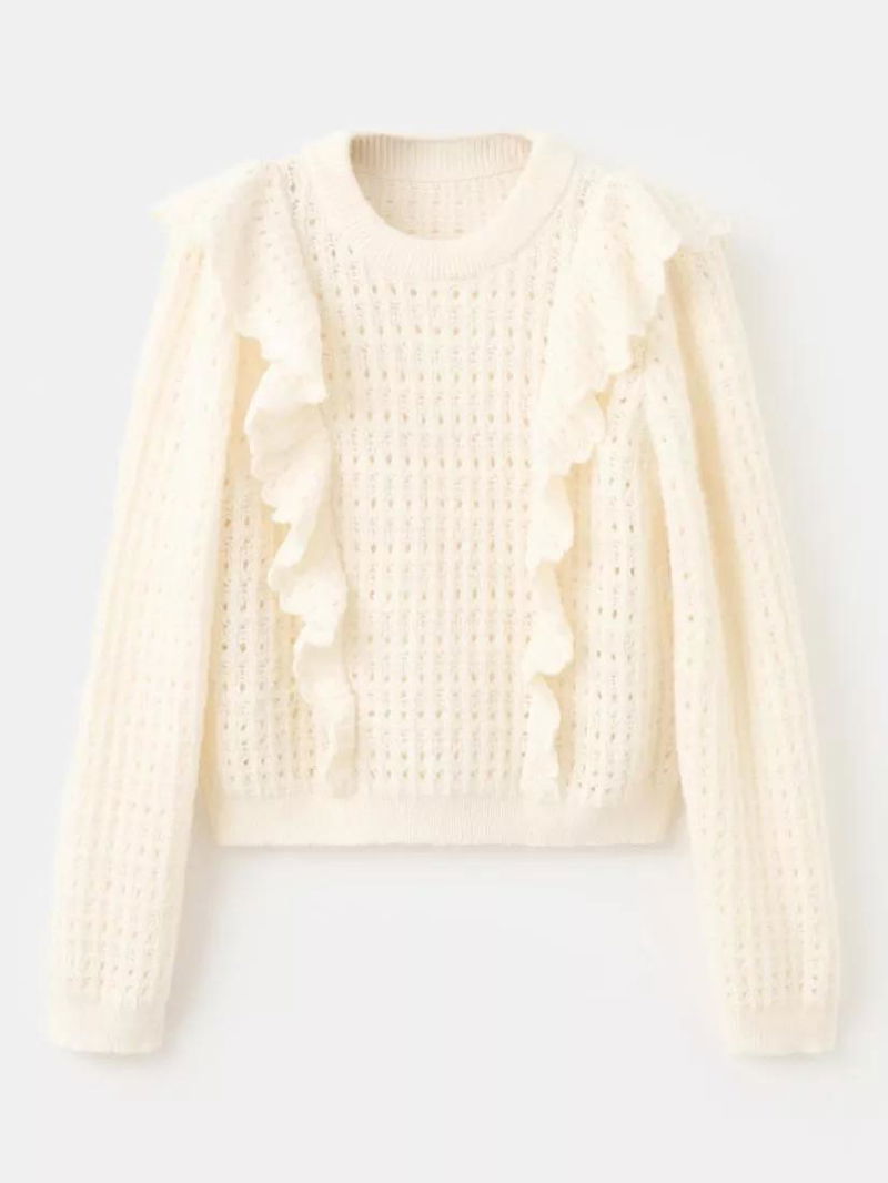 Tejado Open Knit Ruffle Jumper, Light Beige