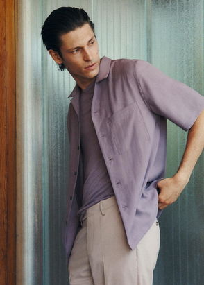 Regular fit, Light fabric, Shirt-style collar, Front button closure, Patch pocket on the chest, Long sleeve with buttoned cuffs, Rounded hem.