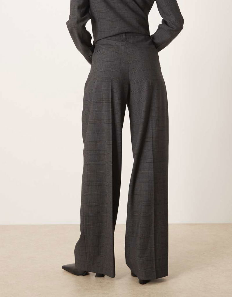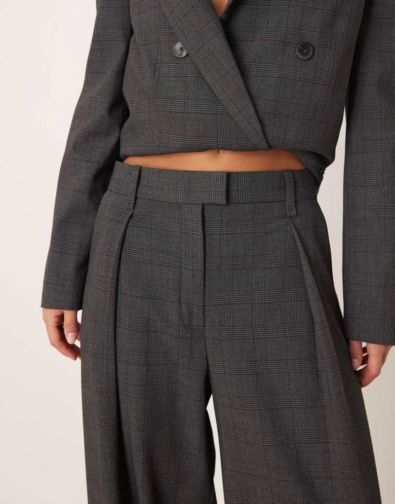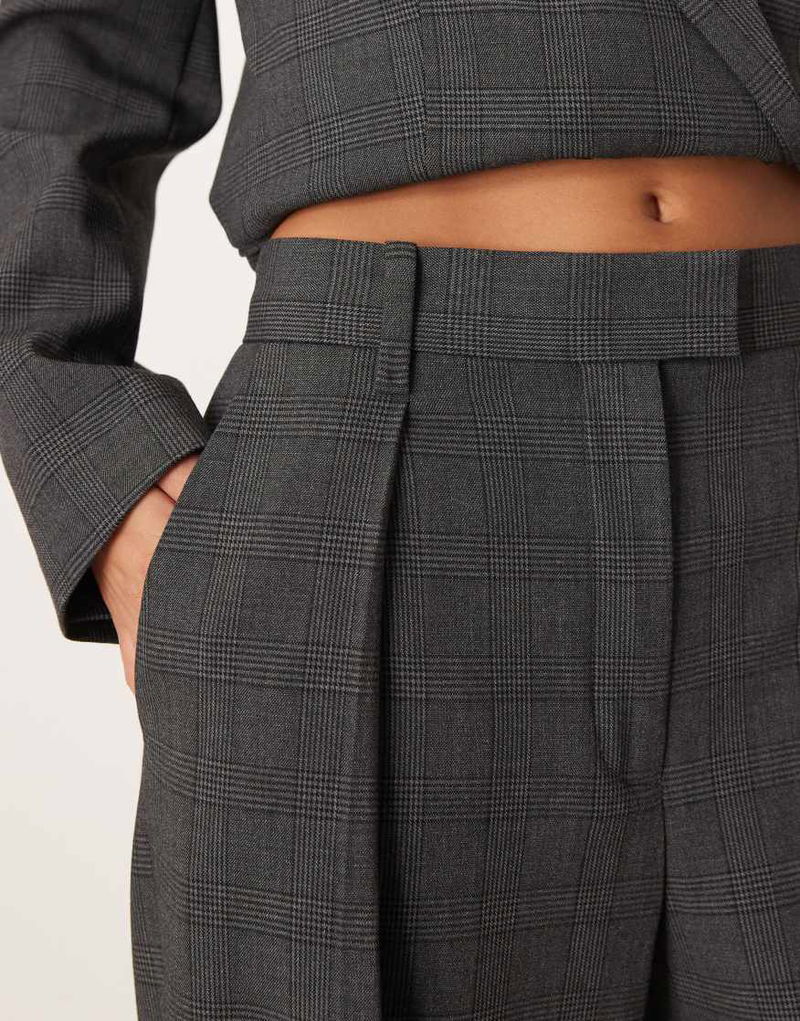 Teriyaki Pleat Detail Tailored Trouser In Grey Check