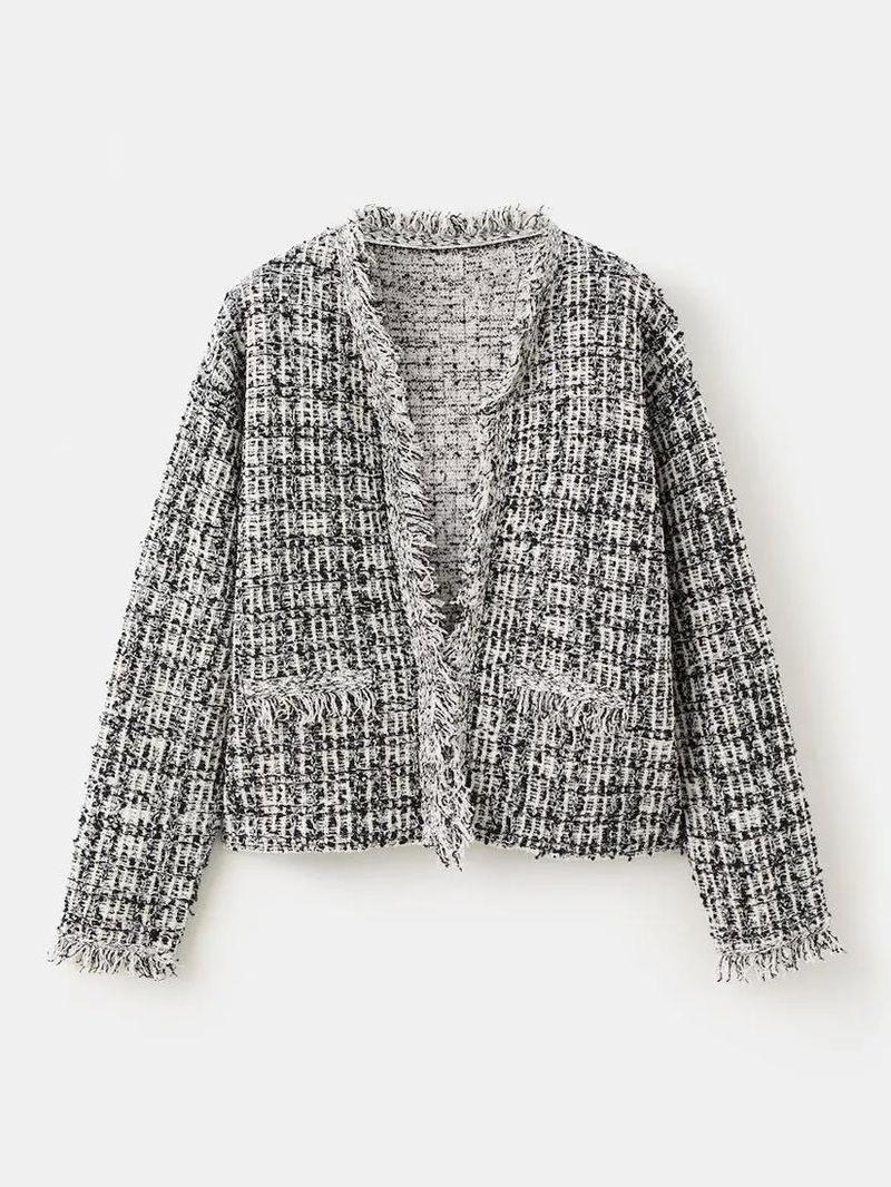 Textured Frayed Edge Cardigan, Black