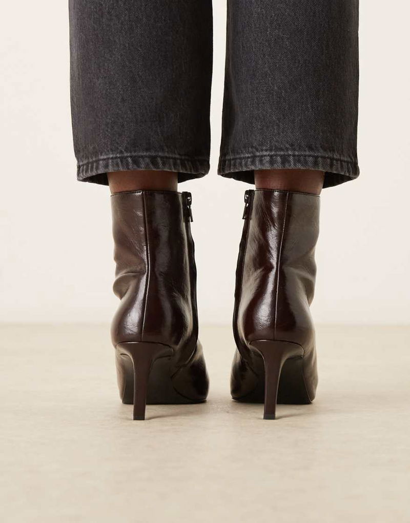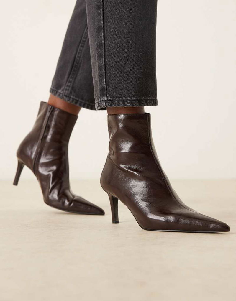 Textured Leather Look Pointed Heeled Boot In Cherry Red