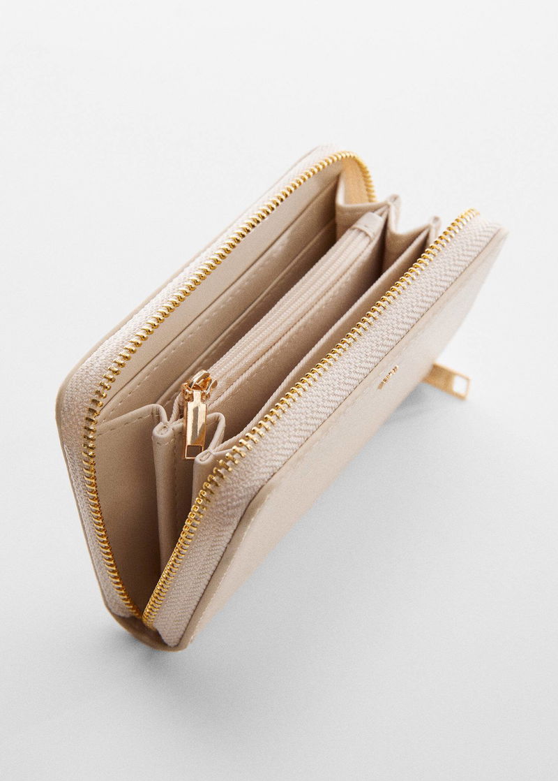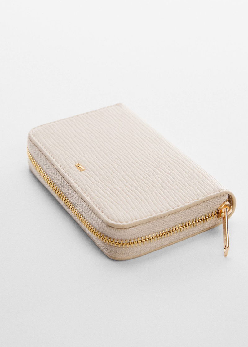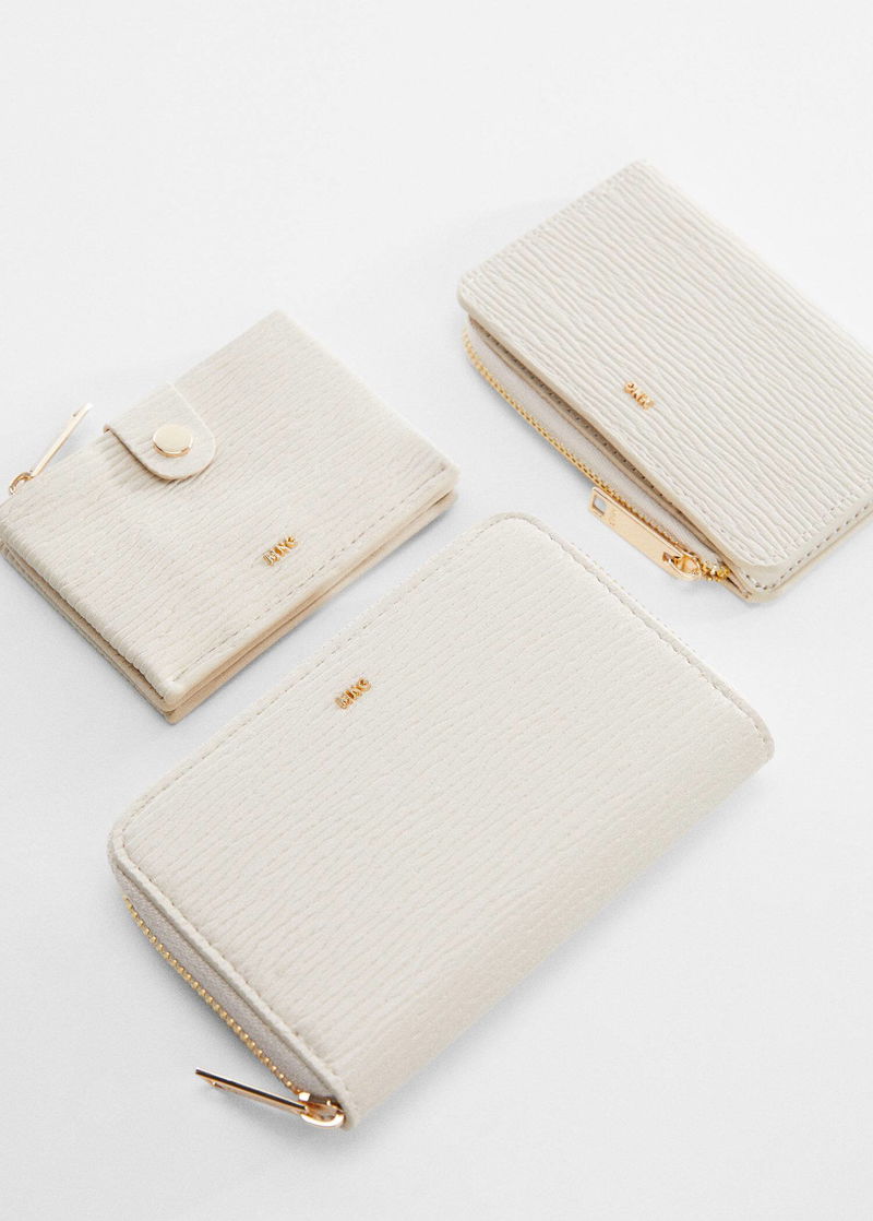 Textured design, Medium, Multiple card slots, Inner zipped pocket, Upper zip fastening, Debossed logo.