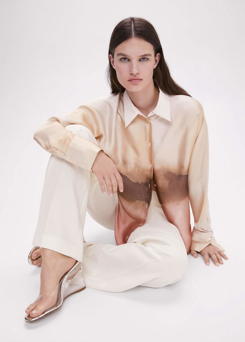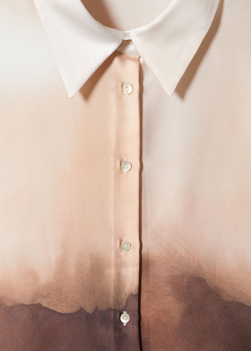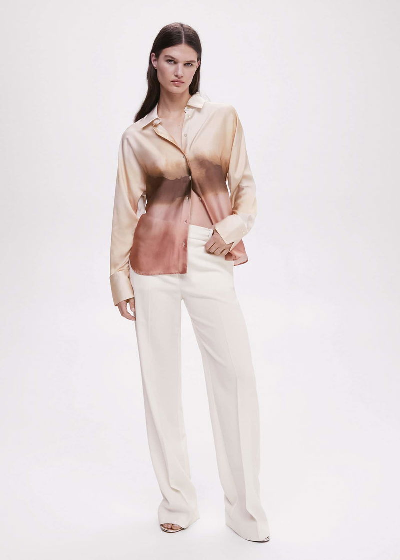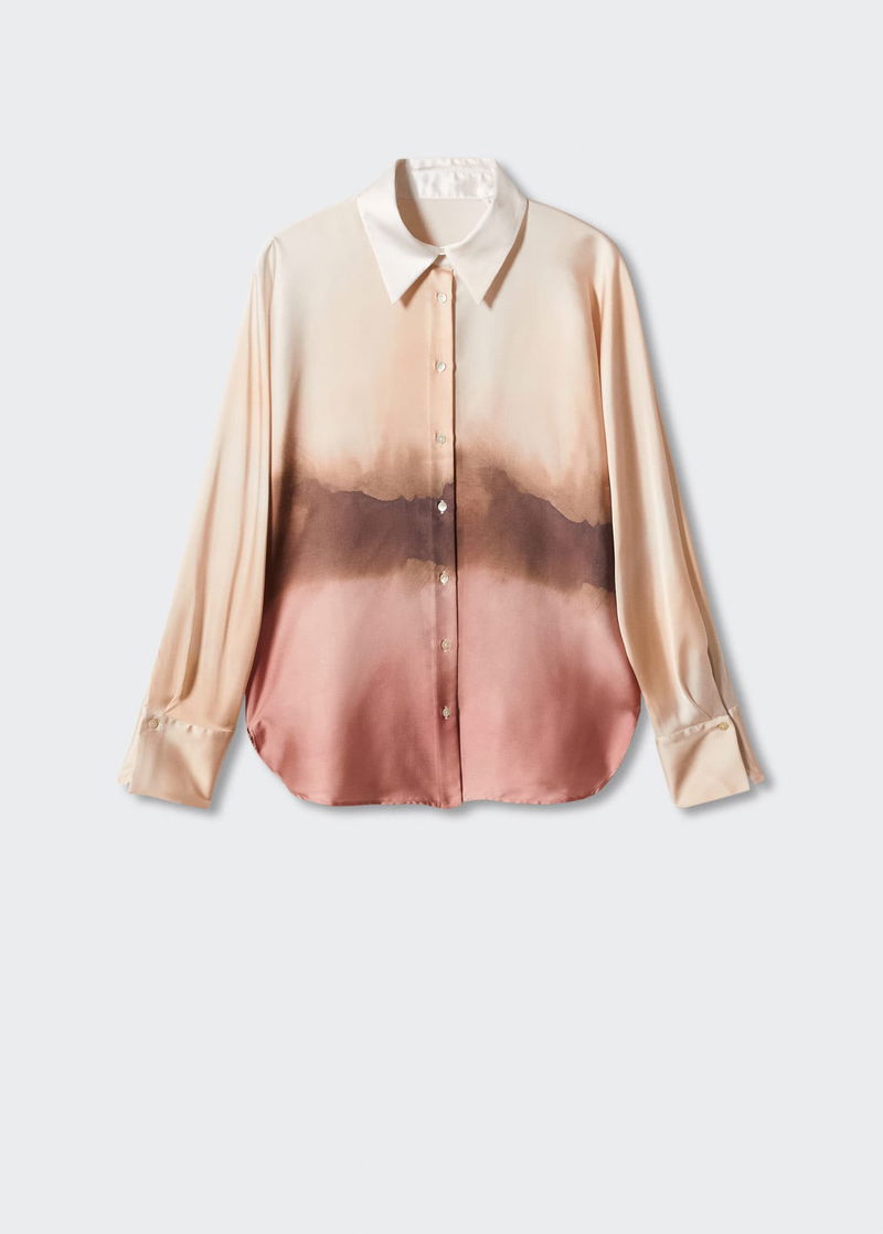 Selection Collection, Flowy fabric, Satin, Tie-dye print, Straight design, Shirt-style collar, Long sleeve with buttoned cuffs.