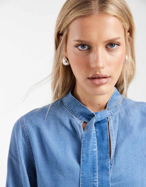 100% cotton fabric. Straight design. Mao neckline. Bow detail at the neck. Sleeveless. Wide straps. Front closure with buttons.