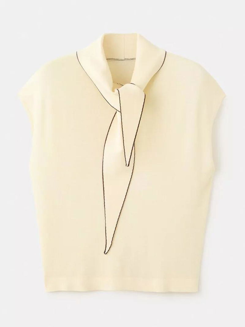 Tie Neck Knit Top, Pastel Yellow