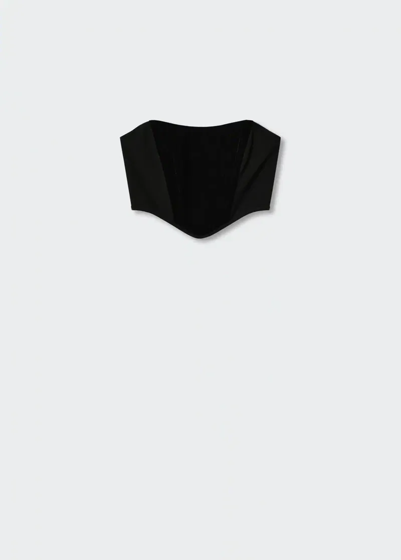 Strapless, cropped design, sleeveless, medium, slim fit.