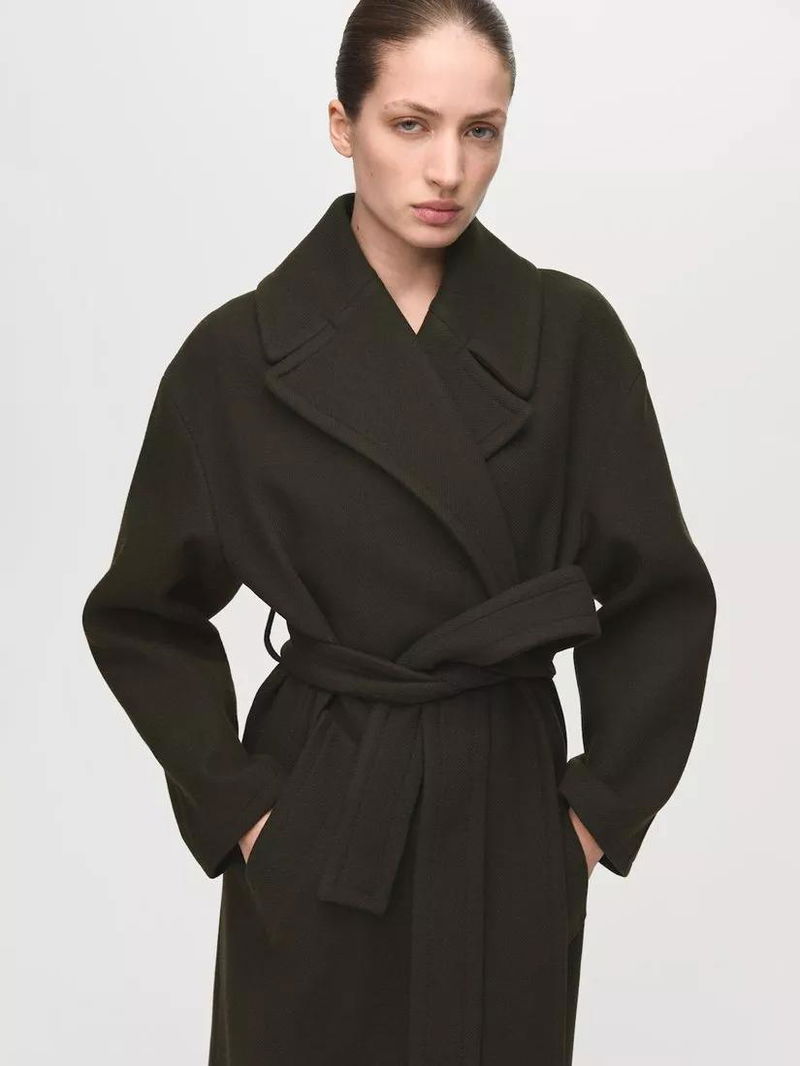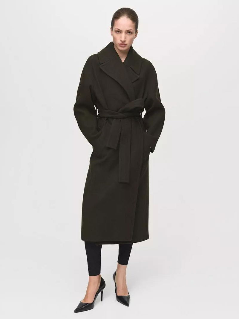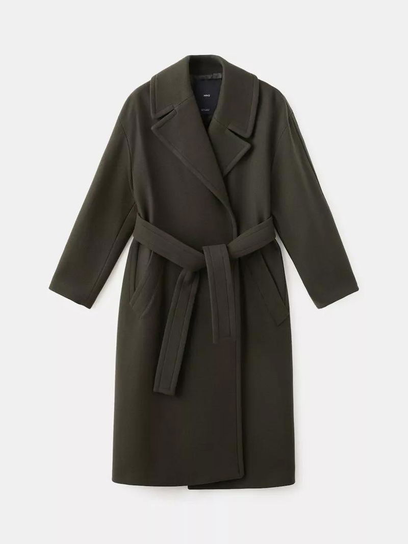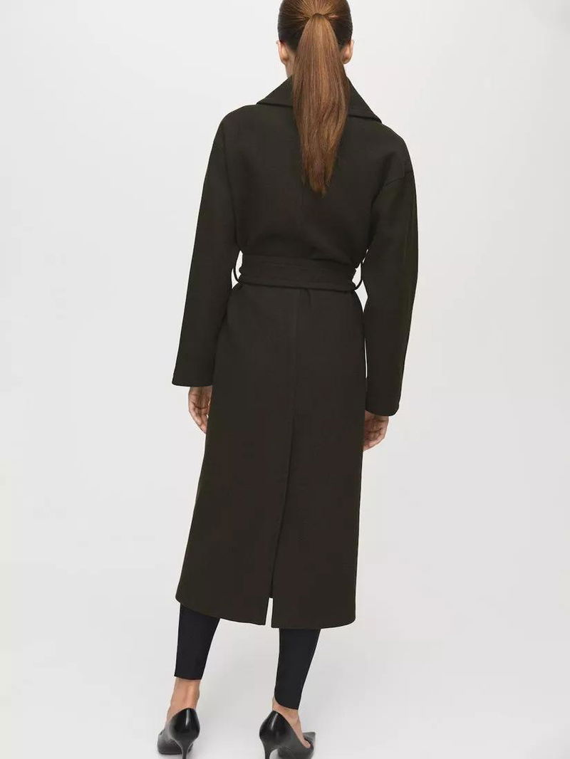 Wrap yourself in this belted midi overcoat from Mango, designed to add structure and warmth to your day. Long sleeves and a sharp collar let you step out or stay in with confidence, no matter the occasion.
