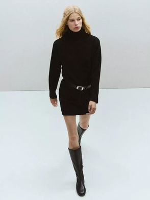 A cosy choice, this textured midi jumper dress from Mango is crafted from a blend of fabrics. With a roll neck for maximum toastiness and long sleeves, it is kept minimal for a truly seasonal collection.