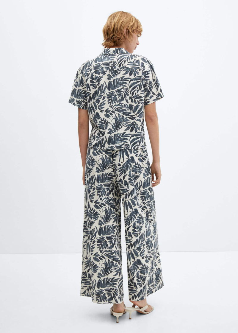 Linen mix, Wide-leg design, Tropical print, Two side pockets, Elastic band on the back, Dart detail, Inner lining.