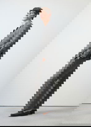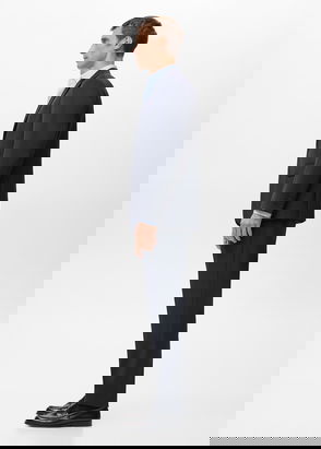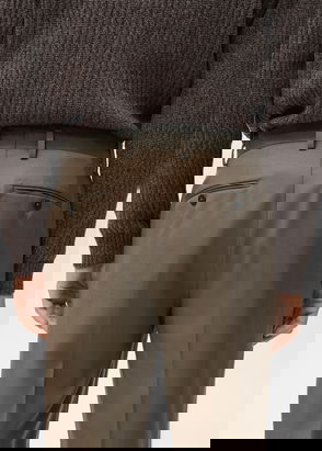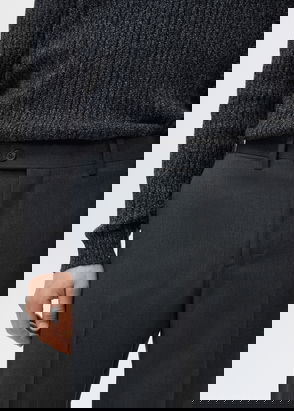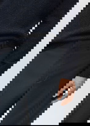 Product on sale. Slim fit. 100% virgin wool fabric. Ironed stripe detail. Front zip, hook and double button closure. Belt loops. Two side pockets. Coin pocket. Two welt pockets at the back.