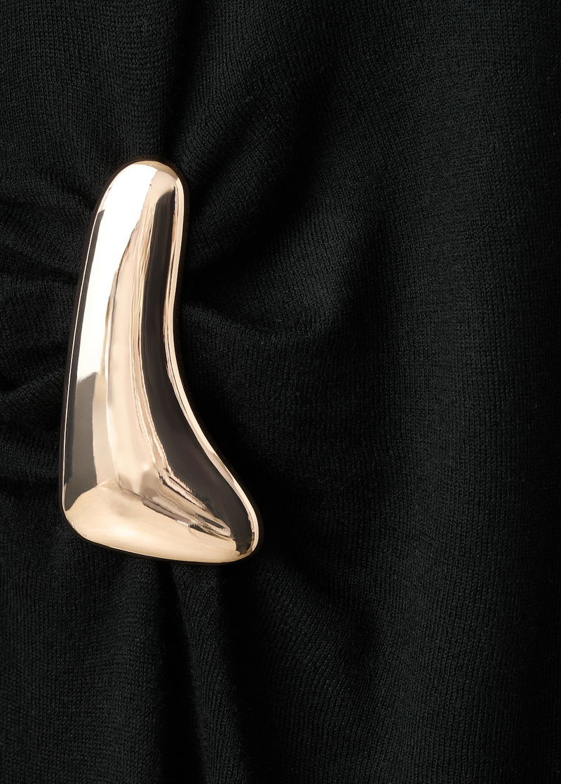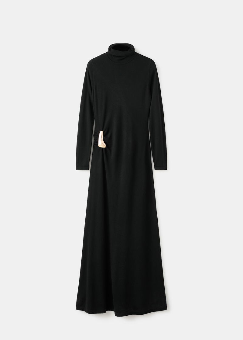 Turtleneck Knitted Dress With Brooch