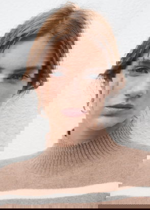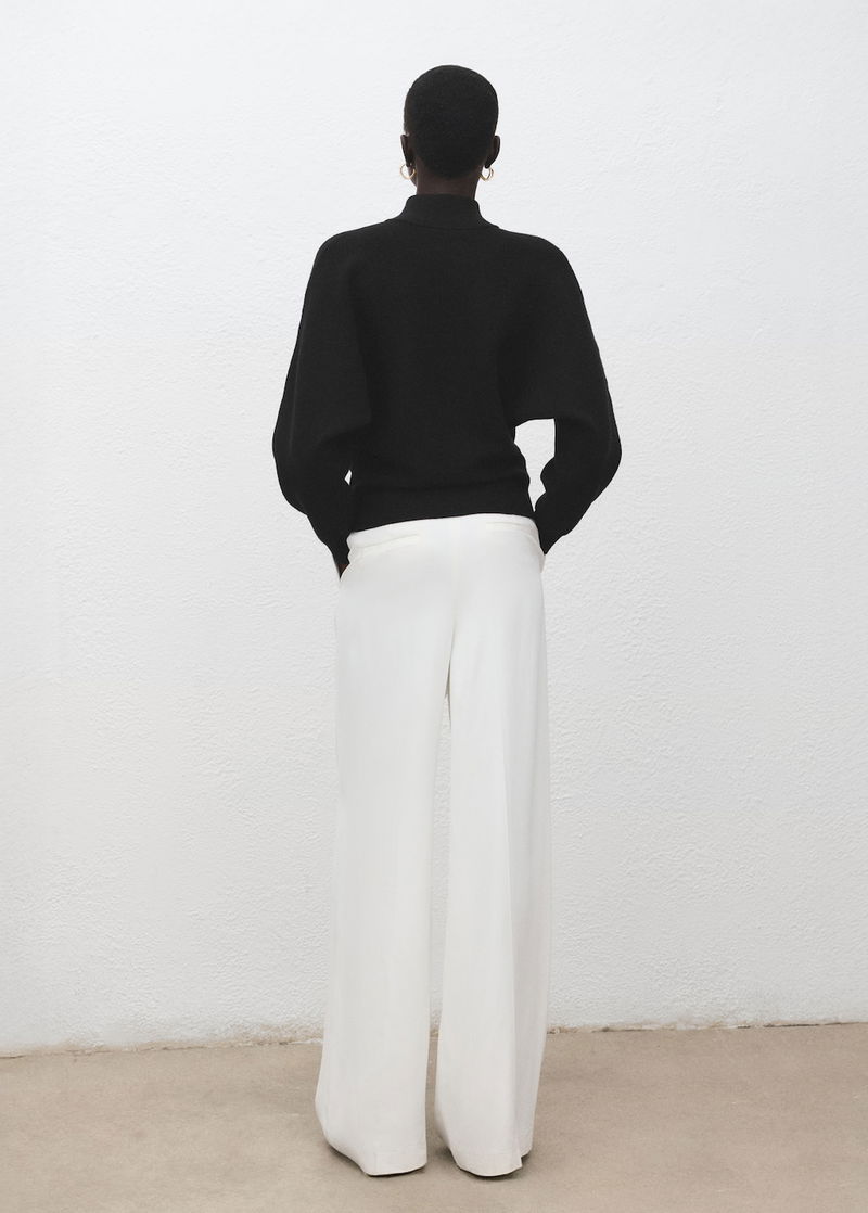 Fine-knit fabric. Relaxed fit. Straight Design. High neck. Long sleeve. Button fastening at the neck. Jewel-effect buttons. The colour black is exclusively online.