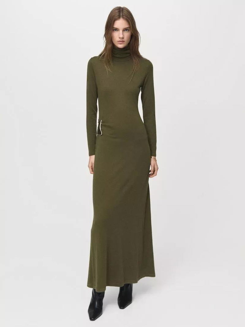Turtleneck Waist Detail Maxi Dress, Khaki